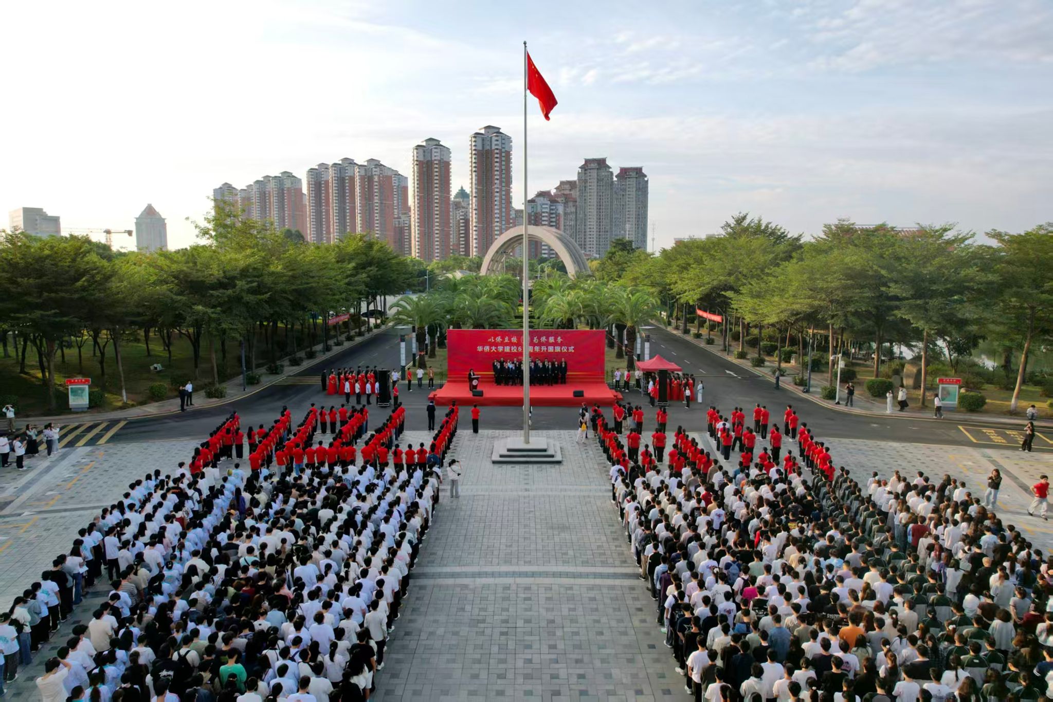 11月1日,庆祝beat365中文在线官网建校65周年升国旗仪式在泉州校区、厦门校区、华文学院同时举行。图为华大泉州校区。