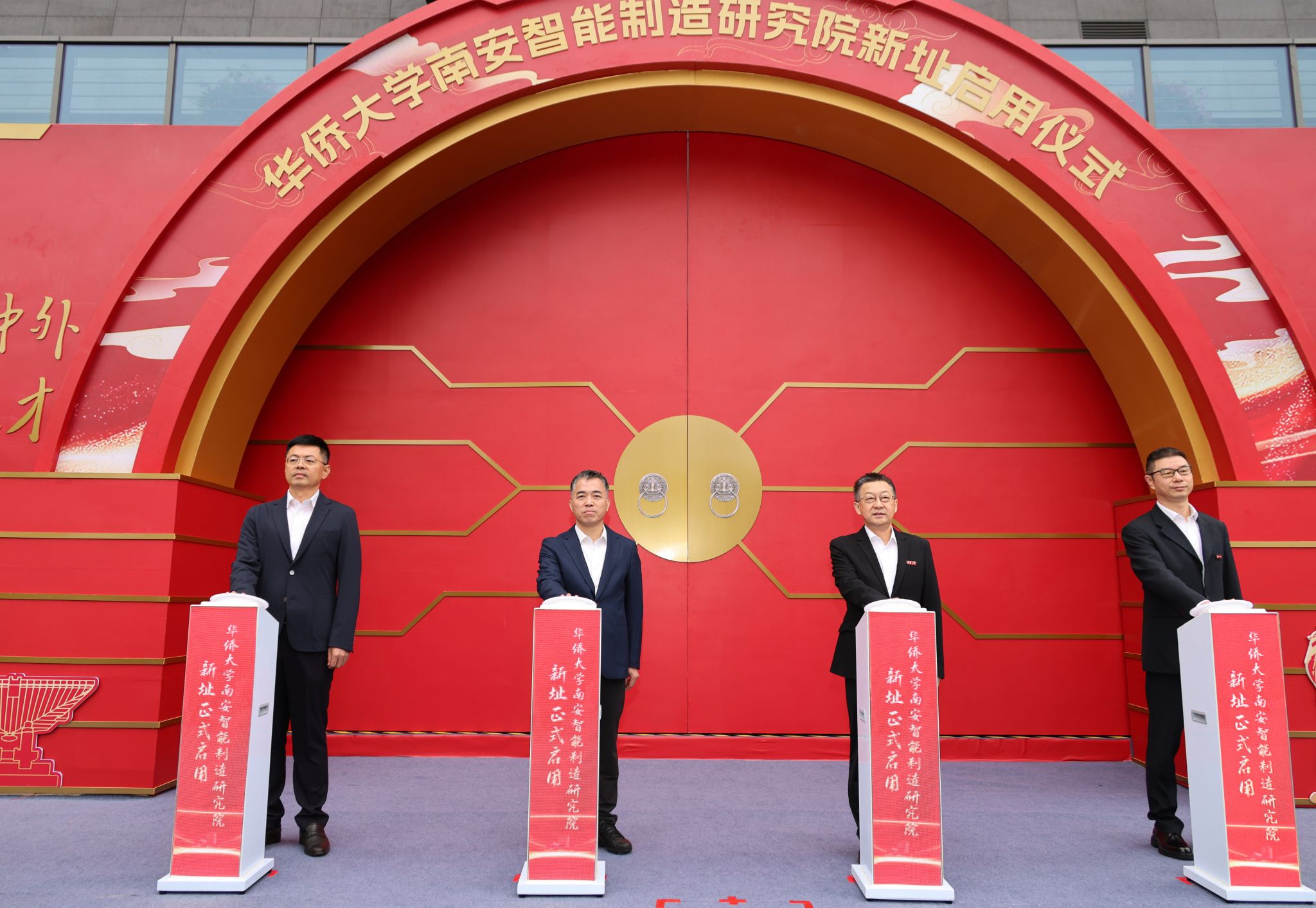 beat365中文在线官网党委书记徐西鹏、副校长黄辉,南安市委书记张桂森、市长王连赞共同按下研究院新址启用键