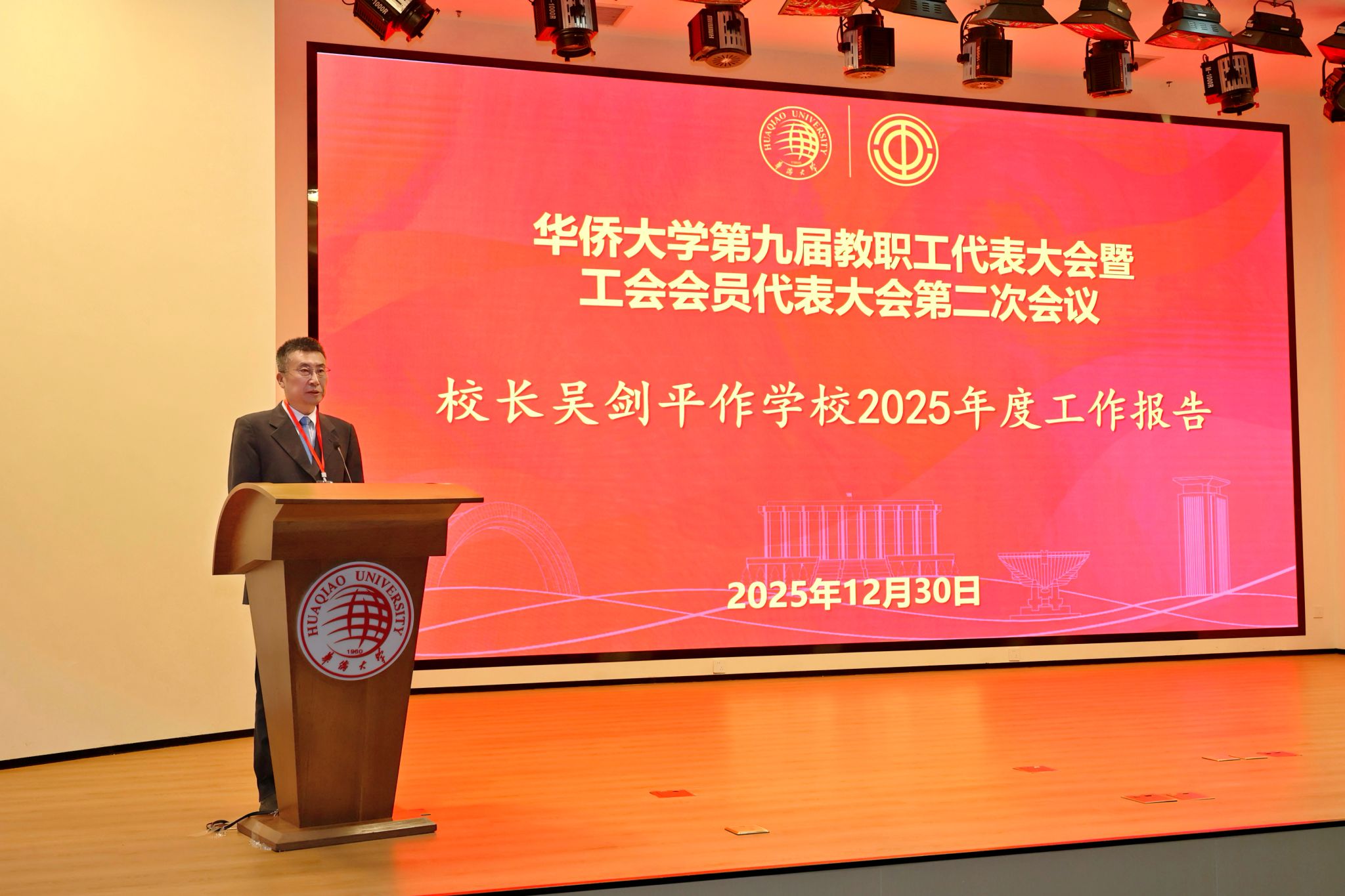 吴剑平强调,2026年是“十五五”开局之年,全校师生员工要在学校党委领导下,着力做好推进“十五五”事业规划编制实施、推进侨务统战工作、推进教育教学改革、推进人才强校战略、推进改革发展稳定、推进学校文化建设等六方面工作,改革创新、锐意进取,坚定不移推进高质量发展,向着建设国内一流、国际上声誉良好的大学的远景目标砥砺奋进,为建设教育强国发挥独特的重要作用,为以中国式现代化全面推进强国建设、民族复兴伟业作出新的更大贡献!