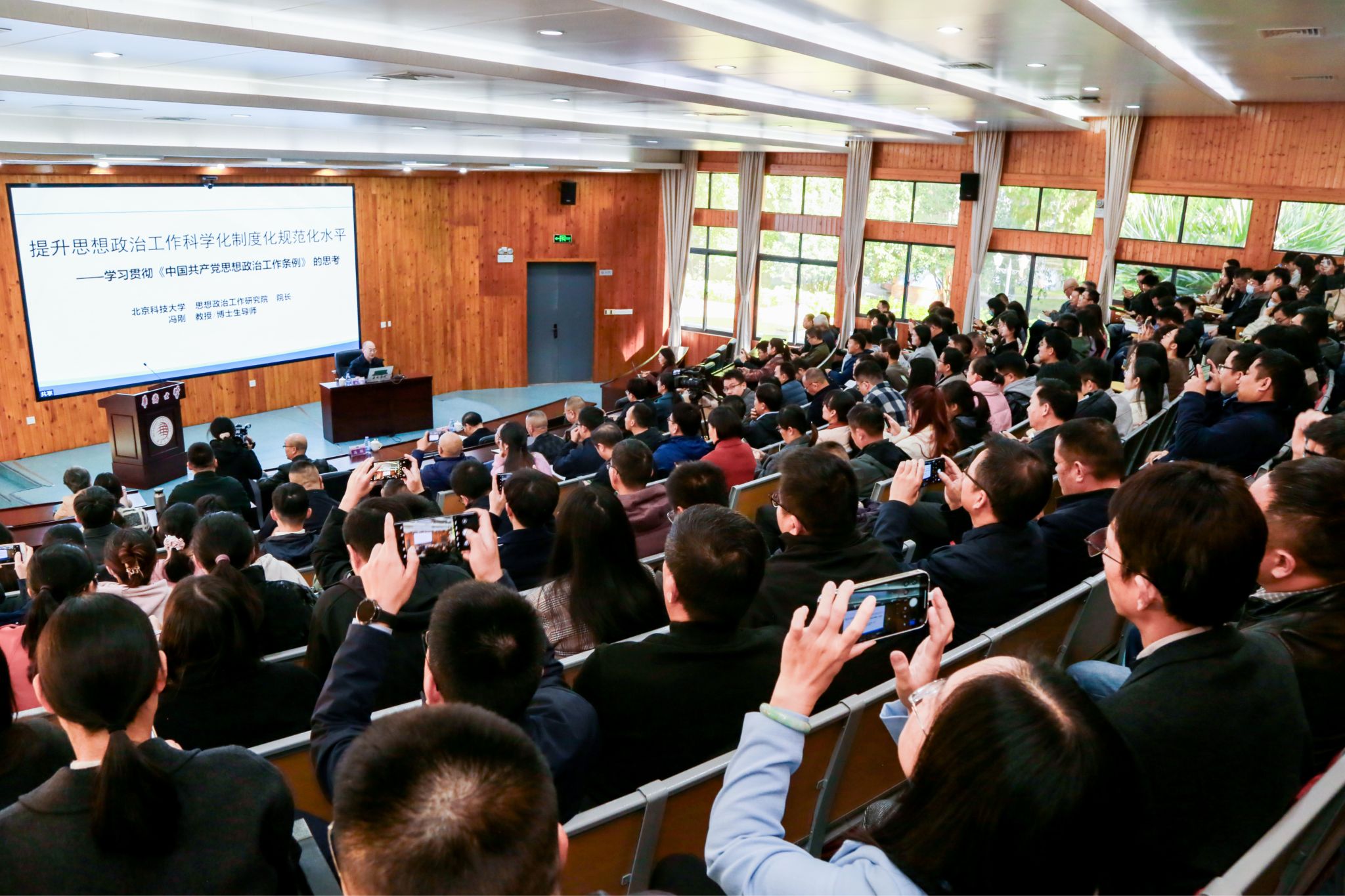 为更好贯彻落实《中国共产党思想政治工作条例》,进一步提高学校思想政治工作水平,12月29日上午,教育部思想政治工作司原司长、北京科技大学思想政治工作研究院院长冯刚受邀作客“华大讲堂”第119讲,作《提升新时代思想政治工作科学化制度化规范化水平——学习贯彻〈中国共产党思想政治工作条例〉的思考》的专题报告。