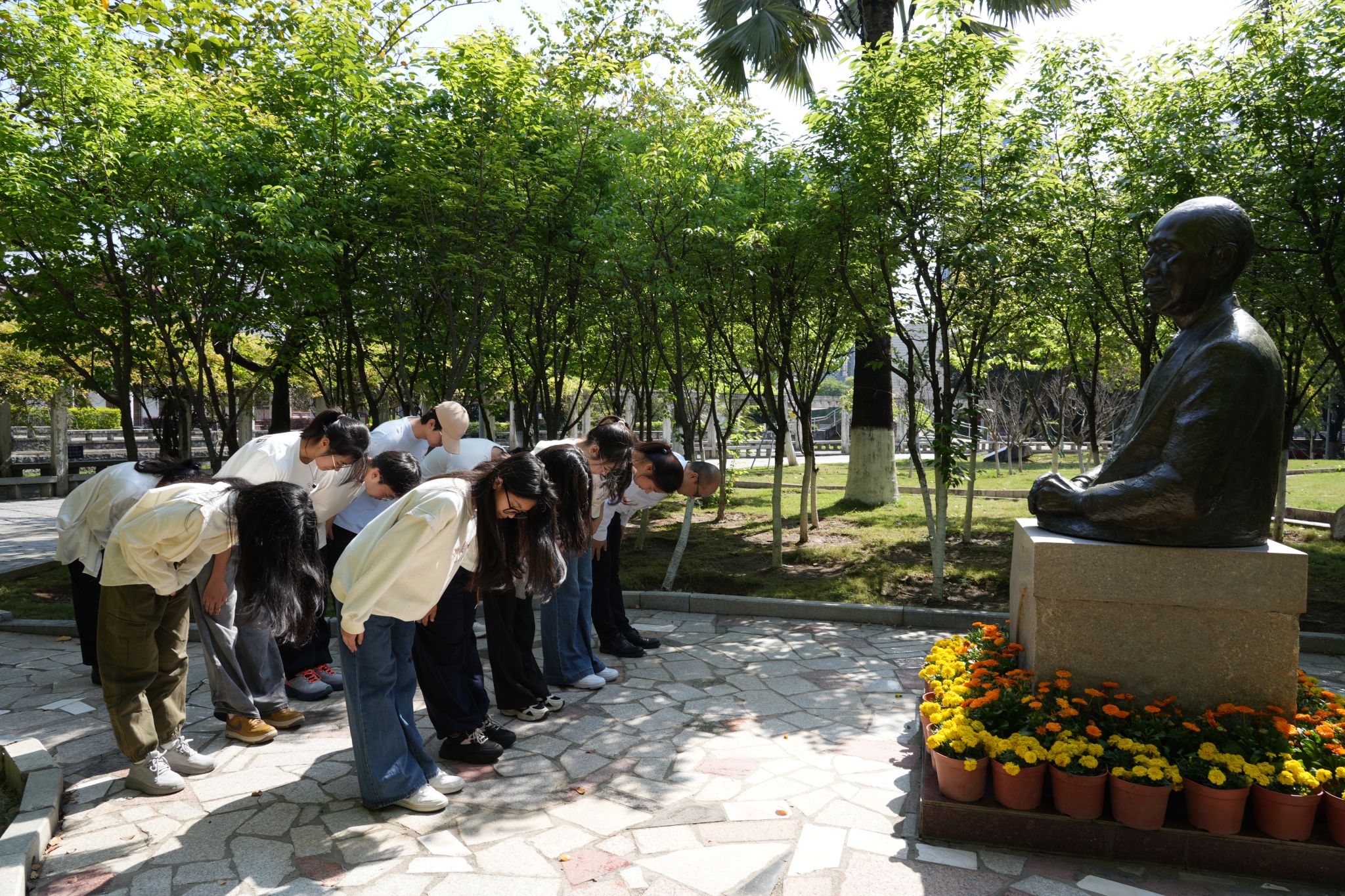 长松盈盈,碧水长思。4月5日,清明节,beat365中文在线官网秋中湖旁廖承志铜像前,百余名师生静静肃立,深切缅怀创校校长廖承志。