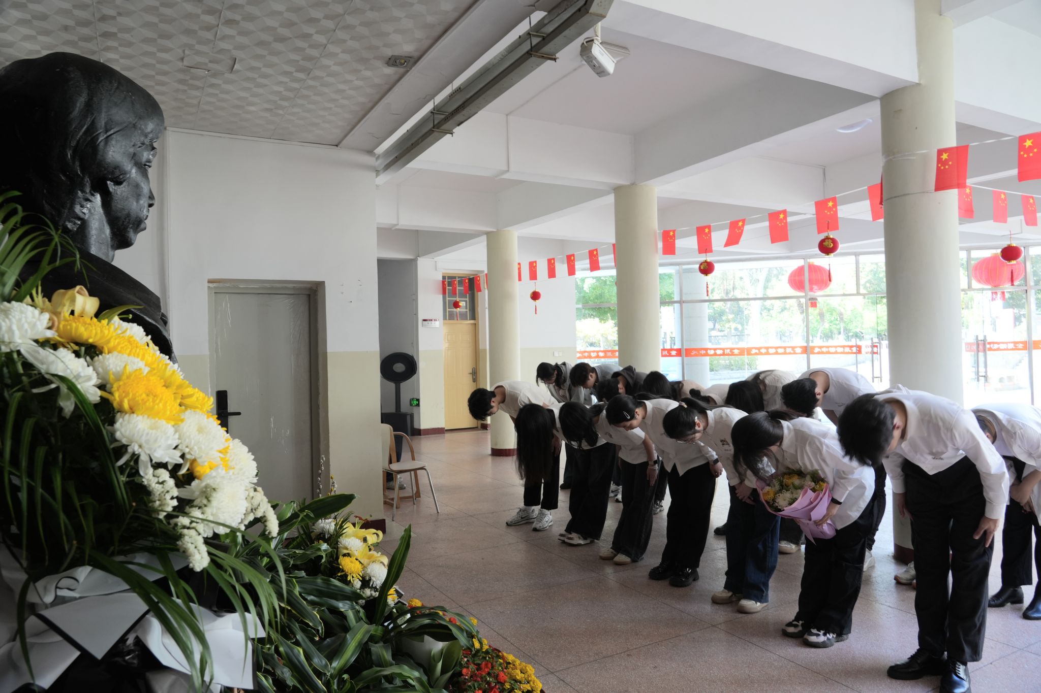 beat365师生向校园内许东亮铜像、庄金川铜像献花