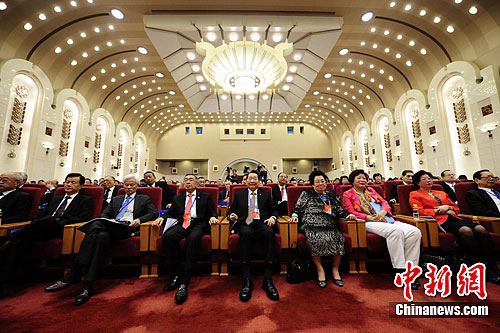 4月9日上午,第六届世界华侨华人社团联谊大会开幕式在北京举行,来自世界各地110个国家和地区的约570名华侨华人社团负责人出席。中新社发 侯宇 摄