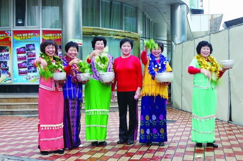 联欢会上,多才多艺的缅甸侨友和留学生们为大家带来了具有东南亚特色的缅甸歌舞表演,受到了侨友们的热烈掌声。一首由侨友高全德带来的缅文歌曲《夏之少女》,把整场活动推向高潮,和着轻松欢快的曲调,大家或随声哼唱,或拍打着节奏,台上台下成了一片欢乐的海洋。还有由侨友许美玲带来的祖孙合唱缅甸歌曲《雨之歌》,5岁小孙女和57岁的奶奶同台演出,虽然歌词还不太熟悉,但这对跨越半世纪的祖孙组合,赢得了全场的热烈欢呼。