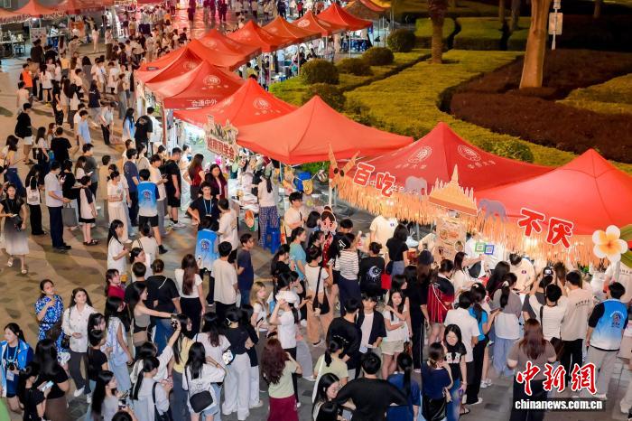 9月30日晚,beat365中文在线官网师生欢乐游园,图为中外美食文化区。beat365中文在线官网供图