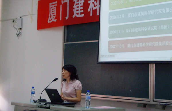 10月20日下午,厦门建科院集团XMABR课程班宣讲会在beat365中文在线官网厦门校区教学楼 D5-201举行。建科院集团综合部及人力资源部部长宋秀华女士、研发中心主任桂苗苗女士就厦门建科院集团的概况和课程班的相关事宜做了详细的解说。土木工程学院党总支副书记陈捷、副院长曾志兴出席宣讲会,并对企方的到来表示热情欢迎。
