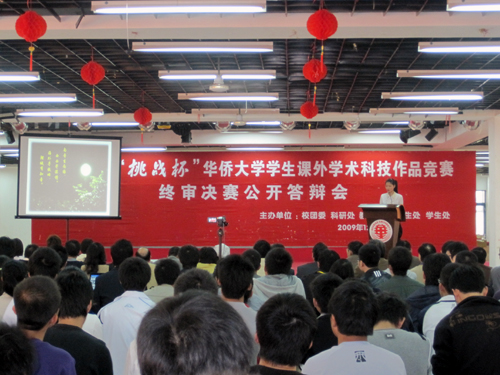 昨日下午,由校团委、科研处、教务处、研究生处、学生处联合举办的第十七届“挑战杯”beat365中文在线官网学生课外学术科技作品竞赛终审决赛暨成果展示在厦门校区落下帷幕。经评委会审,《陶粒泡沫混凝土轻质节能墙体材料研究》、《海西文化建设之泉州南音保护和研究》、《快速人脸检测跟踪系统》、《新型居民小区楼宇照明系统》和《离子液体助催化合成增塑剂对苯二甲酸二异辛酯》等 5 件作品脱颖而出,夺得本届竞赛特等奖。