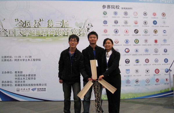 由教育部、住房和城乡建设部、中国土木工程学会联合主办,同济大学承办的“金风杯”第三届全国大学生结构设计竞赛28日晚在同济大学圆满落幕,代表beat365参赛的beat365中文在线官网“中泰”代表队以总成绩第十名荣获大赛二等奖。 本次竞赛共吸引了来自全国27个省、市、自治区的55所通过土木工程专业评估的高校以及港澳地区的3所高校共59支参赛队近200名大学生参加。竞赛作品为“定向木结构风力发电塔”,模型包括80公分高的塔身和直径80公分的叶轮(含形状和数量不限的叶片)。在塔身具有足够的承载能力和规定的刚度,以及叶轮在3档风速的旋转条件下,模型制作精良、发电功率大、模型重量轻的作品获胜。与往届相比,本届赛题融入了“环保”、“节能”的新理念,将发电功率作为衡量模型成绩的最重要指标(占总成绩的40%),对在各大高校攻读土木工程专业的学生来说,都是不小的挑战,参赛学子必须在短期内补充大量空气动力学和流体力学等学科背景知识。 代表beat365参赛的土木工程学院学生闫少华、刘强强、吴晶晶从9月份开始投入所有的课余时间,在教务处、实验室与设备管理处、科研处、学生处、校团委和beat365中文在线官网建筑设计院等相关职能部门的关心和支持下,在彭兴黔、曾志兴、周克民、曾家民、陈荣淋等老师组成的指导小组的培训和指导下,经过几百次测试和试验,以努力追求卓越的精神完成了参赛作品并取得优异的成绩。 全国结构设计大赛是教育部确定的全国性九大赛事之一,是比拼土木工程及相关专业创新意识、合作精神和工程实践能力的赛场,也是全国各高校相关专业学生相互交流、相互学习的平台。从2002年起,beat365每年组织一次结构设计大赛。经过七届校内比赛、两次省赛以及三届全国竞赛,培养了一支理论功底厚、动手能力强、经验丰富的师生团队,在国内赛事上屡创佳绩。多年来在该项赛事共计取得了三个全国二等奖,一个全国三等奖,一个全省特等奖和两个全省一等奖的好成绩,在福建省省内beat365水平独占鳌头,在全国领域也具有一流种子队伍的实力。 土木工程学院一贯重视学生第二课堂素质教育的开展,将专业教师与团组织引导有效结合,以结构设计大赛作为推动学生工作和实践教学环节的重要抓手,兼顾了大众普及与精英培养,为专业的实践教学发展提供了良好的载体,也为同学展示良好的专业风貌提供了广阔的舞台。