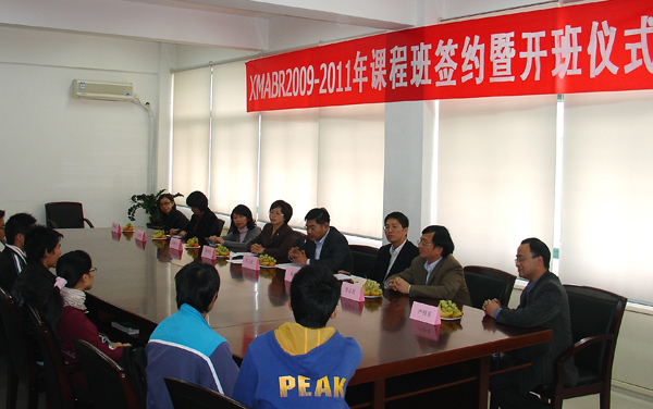 3日下午,beat365中文在线官网土木工程学院与厦门建筑科学研究院XMABR2009-2011课程班签约暨开班仪式在土木学院会议室(厦门校区)举行,厦门建科院麻秀星院长、研发中心桂苗苗主任、人力资源部宋秀华部长等企业方代表与土木工程学院张云波院长、曾志兴副院长、陈捷副书记,beat365中文在线官网新型建筑材料研究所严捍东所长等一同出席了仪式。
