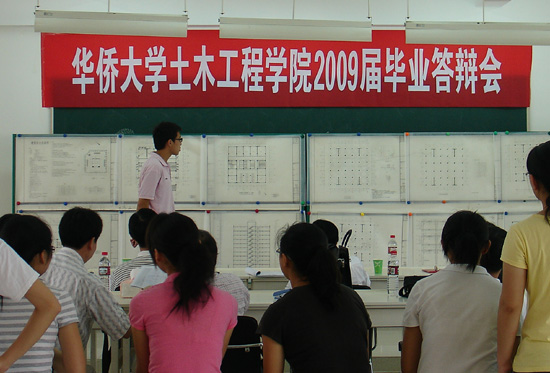 6 月 8 日 上午,土木工程学院 2009 届本科生优秀毕业设计(论文)答辩会在厦门校区顺利举行,标志着学院在厦门校区举行的首届毕业答辩圆满落下帷幕。此次答辩按专业方向分组进行,邀请了厦门市建设管理局副局长林树枝教授级高工等 9 位专家分别担任各答辩委员会的主席和副主席,共有土木工程、工程管理、土地资源管理和给水排水工程等 4 个专业的 14 位同学参加本次优秀毕业设计(论文)答辩。