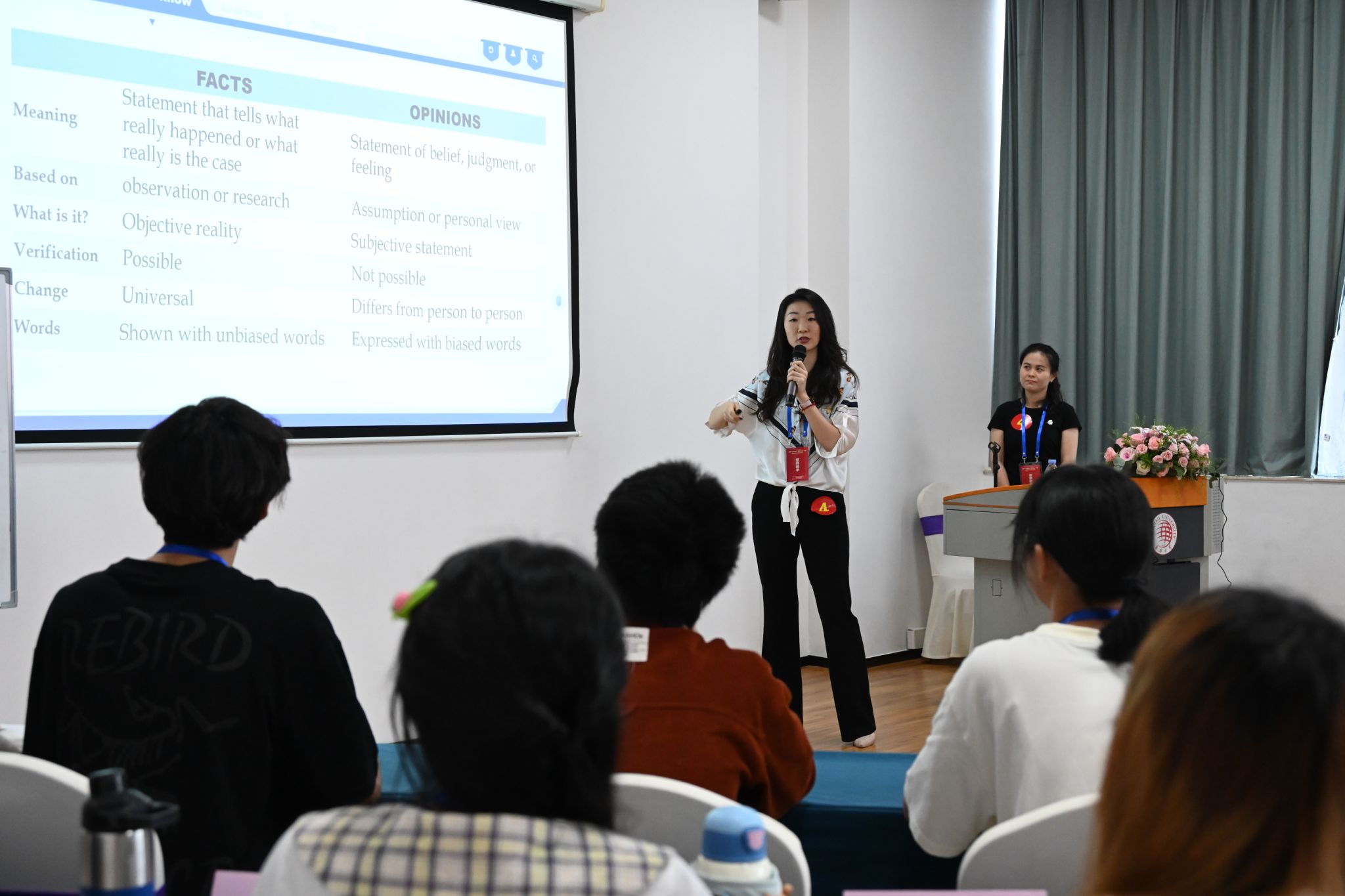 beat365中文在线官网外国语学院周静敏、蒋旭莹、卫妮、汤璐四位教师组成的团队以“Biographical Writing”为授课主题,在教学展示环节中通过激活学生“已知(Known)”、触发学生“想知(Want to know)”和引入“新知(Learned)”的环节,帮助学生通过搭建人物故事的PDF写作框架,塑造人物形象,并鼓励学生“分享所知(Share)”,讲好中国人物的故事。团队教学设计理念新颖,有效地使用数智化工具辅助教学,实现创新育人的目标。