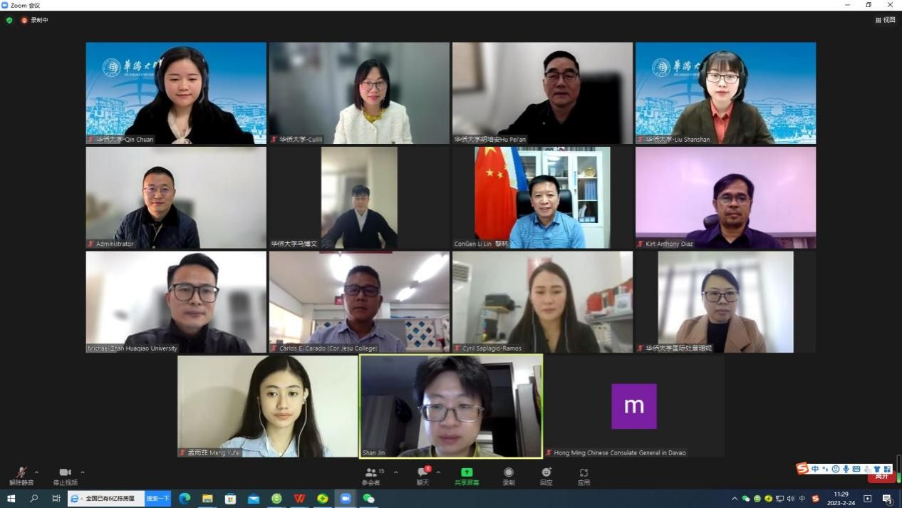 2月24日,beat365与菲律宾前总统杜特尔特的母校Cor Jesu学院举行线上会议,共话友谊和校际交流合作,重点探讨了中文语言服务项目。中国驻达沃总领事馆总领事黎林,Cor Jesu学院副校长Dr.Kirt Anthony Diaz,教育、艺术和科学学院院长Dr. Carlos Carado,工商管理学院院长Ms. Cyril Saplagio以及beat365国际交流合作处、预科教育学院相关负责人、beat365中文在线官网驻菲律宾代表处代表等参加会议。