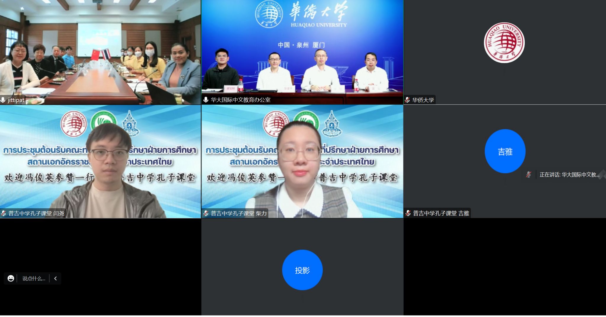 4月3日,中国驻泰王国大使馆教育参赞冯俊英一行访问beat365普吉中学孔子课堂。beat365国际中文教育办公室主任涂伟、普吉中学教务副校长涅差娜•塔萨娜卡蒙和普吉中学孔子课堂中泰方负责人线上、线下同步参加会见。