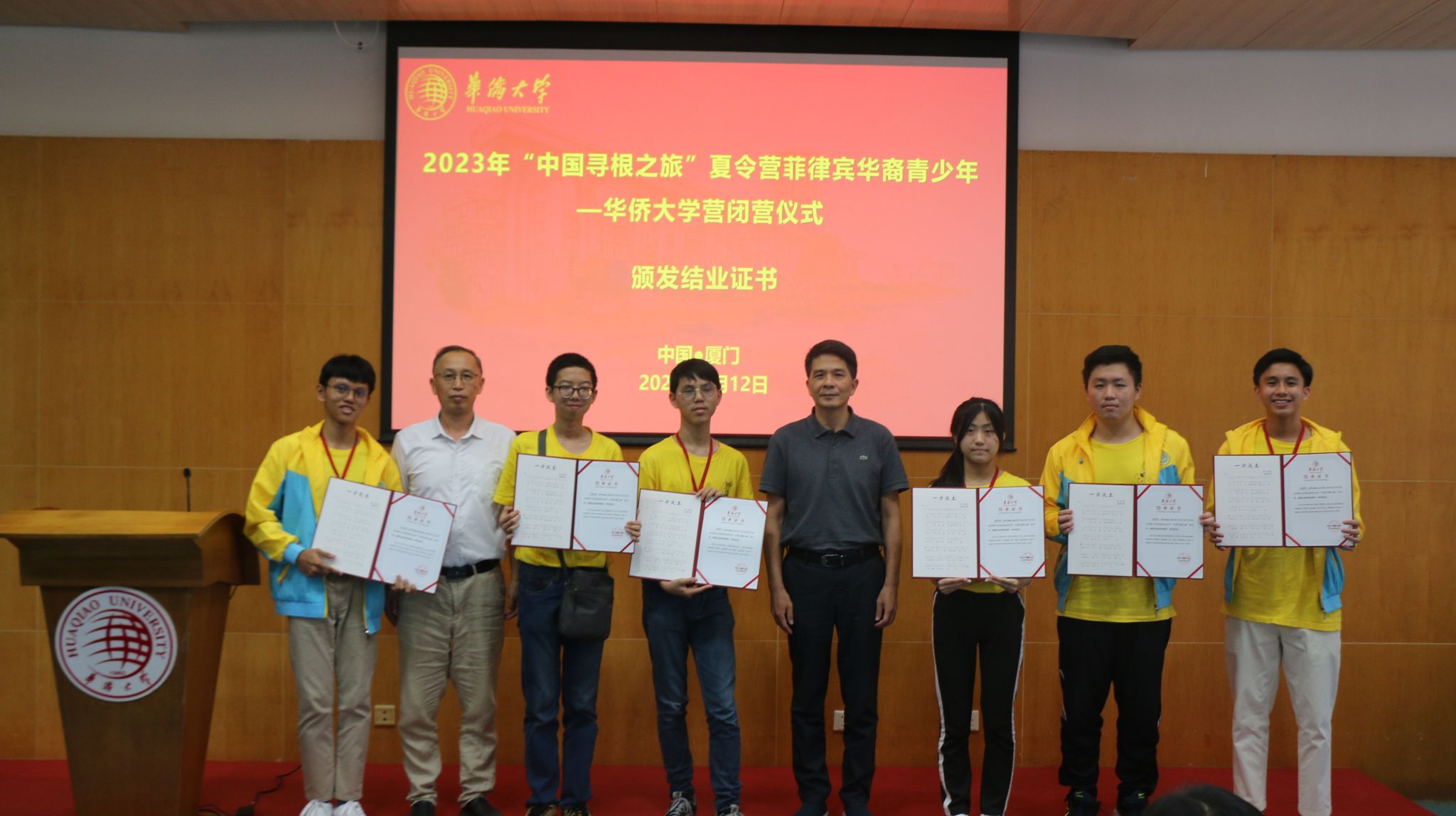 7月12日下午,由中国侨联主办,福建省侨联、beat365中文在线官网、泉州市侨联、厦门市侨联承办,菲律宾华教中心协办的2023年“中国寻根之旅”夏令营——菲律宾华裔青少年beat365中文在线官网营举行闭营仪式。厦门市侨联副主席杜瑞田、beat365中文在线官网华文教育处处长涂伟、厦门市侨联副秘书长朱东芹、厦门市侨联文化联络部三级调研员唐欣欣及相关负责人出席参与。