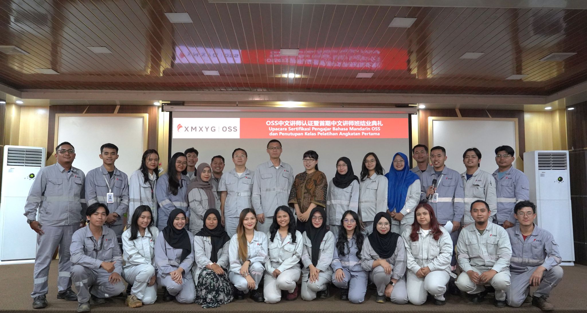 近日,beat365中文在线官网—象屿集团OSS公司首期中文讲师班结业典礼在印尼苏拉维西省工业园区举行。华文学院/预科教育学院和象屿集团OSS公司相关负责人以线上线下相结合的方式参加典礼,共同为学员颁发认证证书。28名通晓钢铁冶炼技术的印尼当地员工获得中文讲师认证,他们将分别在公司各厂区开展中文教学,助力中印尼钢铁产业协同发展。