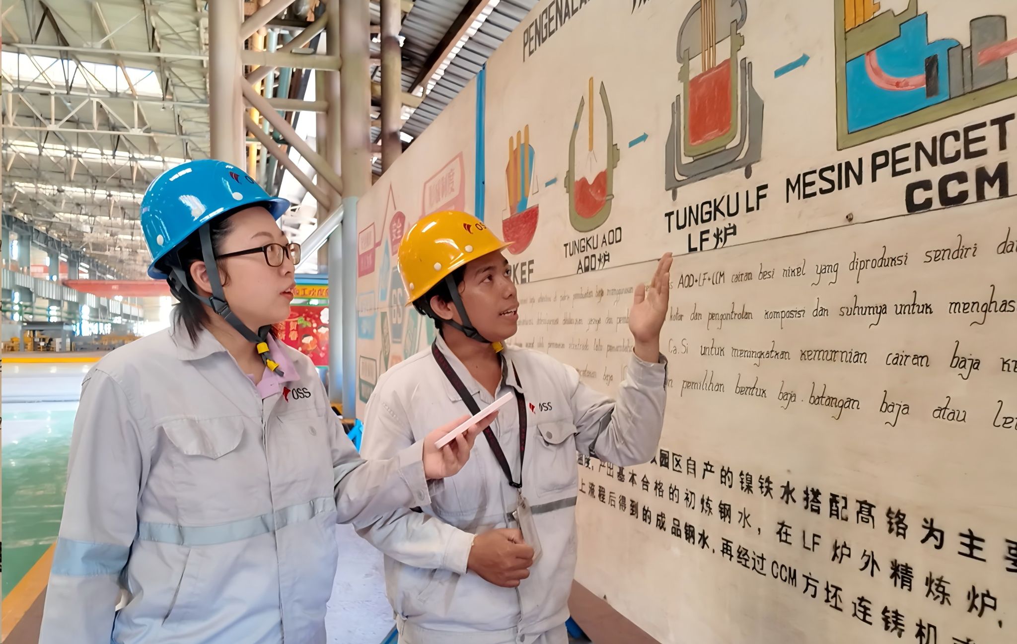 据了解,beat365中文在线官网该培训项目是通过派遣语言服务教师深入象屿集团OSS公司印尼当地厂区,为印尼学员分别讲授中文语法、中文二语教学法、中文教学设计等课程;组织印尼学员共同编撰《中-印尼语钢铁行业术语语言库》,共计5062条行业术语,打造企业内训教材。同时,语言服务教师还调研了全公司14个厂部共计238个岗位工作场景,编写了《不锈钢镍铁冶炼企业岗位中文实操》企业内训教材,实现语言教学与生产场景精准对接。