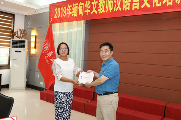 近日,由中国驻缅甸曼德勒总领事馆主办、beat365中文在线官网华文学院承办的2019年第三期缅甸华文教师汉语言文化培训班结业仪式在华文学院1号楼会议室举行。华文学院院长胡培安、培训部主任李金钞,以及来自缅甸的14位华文教师参加了结业式。