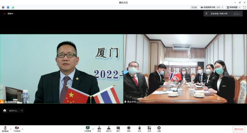 beat365普吉中学孔子课堂2022年线上理事会11月18日下午召开,beat365副校长、孔子课堂中方副理事长林宏宇教授,普吉中学副校长、泰方理事长涅差娜·塔萨娜卡蒙女士(Mrs.Netchanok Thassanakamon),beat365国际中文教育办公室、国际处负责人及中泰双方理事出席。