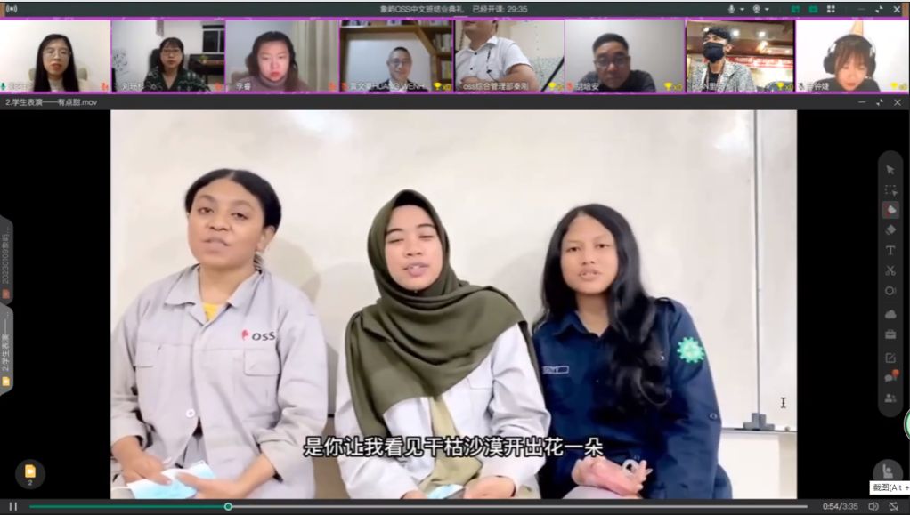“感谢beat365中文在线官网和象屿集团提供了宝贵的汉语学习机会,这个阶段我学习到了许多汉语知识,了解了中国文化。当碰到不懂的问题,老师们总是能够耐心细致地帮助我讲解,让我的汉语水平有了很大的提高。”1月8日,在“象屿集团印尼员工线上短期中文速成班”结业典礼上,员工圣平阳动情地说。