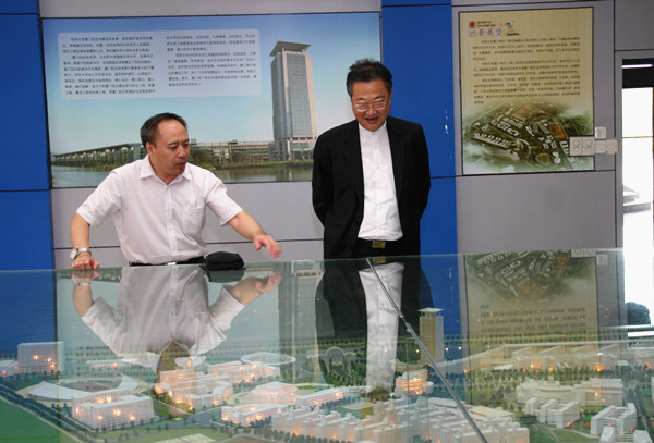 袁保新(右一)参观厦门校区模型室