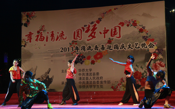 晚会节目种类多样,民族舞、芭蕾舞、民歌、街舞、魔术等轮番上阵。开场歌舞《大中国》用充满动感的旋律表达对祖国生日的祝福。华大境外生们表演的《年的传说》,将中国传统武术与舞狮相结合。在《清流》的演出中,演员们用道具模拟出清流的竹林,表现清流县翠竹环绕的自然生态环境,再现清流人民热爱自然、与之和谐相处的景象。