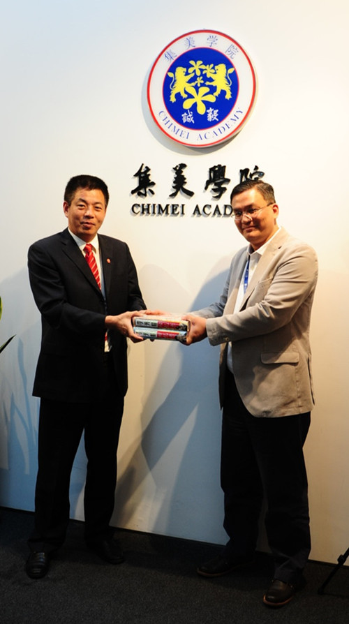 吴季怀副校长向新加坡集美学院副董事长苏宁赠送纪念品