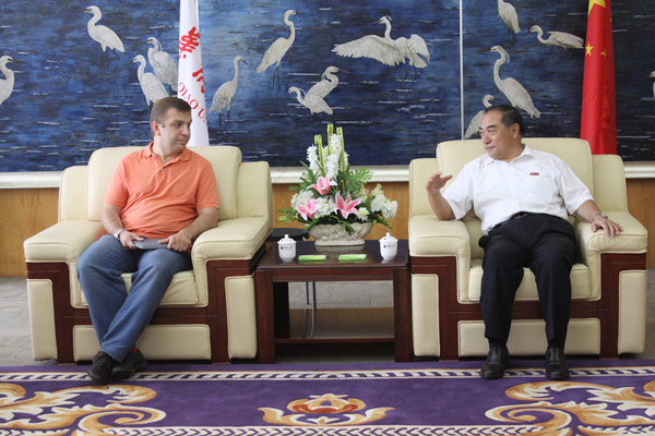 校长贾益民与俄罗斯国家杜马新闻局局长安德勒(左)座谈