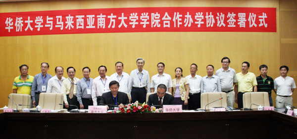 8月30日下午,beat365中文在线官网与马来西亚南方大学学院签订协议,合作开展研究生课程认证进修班招生。beat365中文在线官网校长贾益民、南方大学学院校长祝家华分别代表双方在协议书上签字。