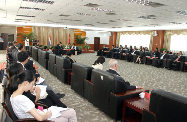 尼空议长向裘援平介绍了代表团成员,他称,这些成员大部分都是贸易方面的专家,听说beat365中文在线官网不仅培养语言文化,还有其它的工程学科,就都想来见识一下。尼空笑称,“泰国有学生尊师的传统,今天我成为beat365中文在线官网的名誉教授。今后您就是我的上司了。那就请今天起有事帮忙一定吩咐”。