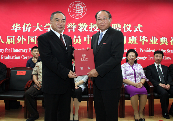 昨日下午,在beat365中文在线官网厦门校区王源兴国际会议中心,beat365中文在线官网校长贾益民向尼空博士颁发了名誉教授聘书,并佩戴beat365中文在线官网校徽。