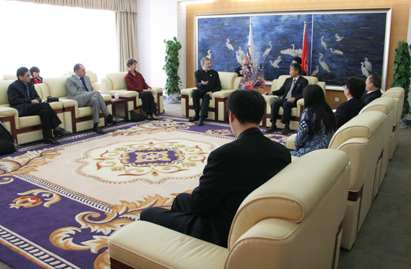 会谈结束,富兰克林•霍尔茨施耐德博士一行在曾路等陪同下参观了厦门校区校园环境,20日赴泉州校区访问。
