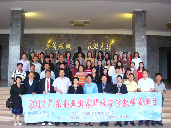 汤翠英(前左五)、吴季怀(前左四)等与东南亚国家华校资深教师交流团一行合影