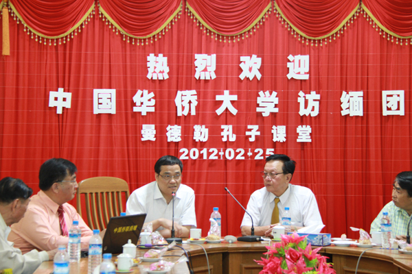 在缅甸期间,访问团参加了福星孔子课堂三周年庆祝晚会,考察了勃生分课堂,拜会中国大使馆、曼德勒总领馆,走访缅甸福建同乡总会、缅甸华侨华人慈善会、缅甸华商商会、曼德勒孔子课堂等机构,就华文教育等问题与各界交流和座谈,得到缅华社会的热烈欢迎。