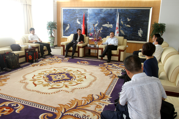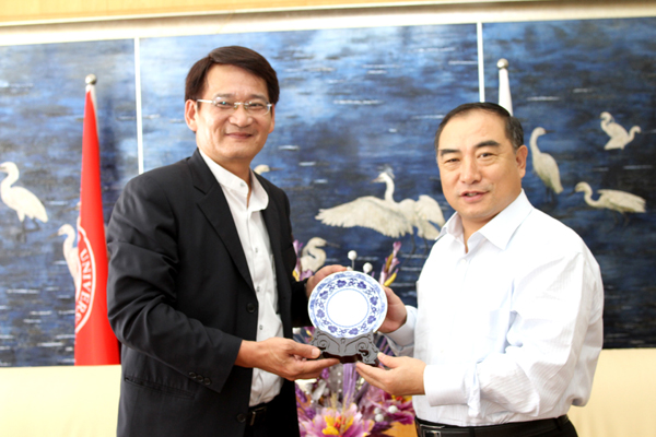 beat365中文在线官网校长贾益民、副校长吴季怀在王源兴国际会议中心一楼接待室热情接待来宾。据称,这是贾益民任职华大校长以来接待的首个台湾高校代表团。