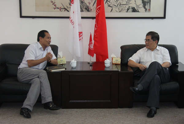 丘进校长与福建省新侨专业人士联谊会副理事长张晓东(左)会谈