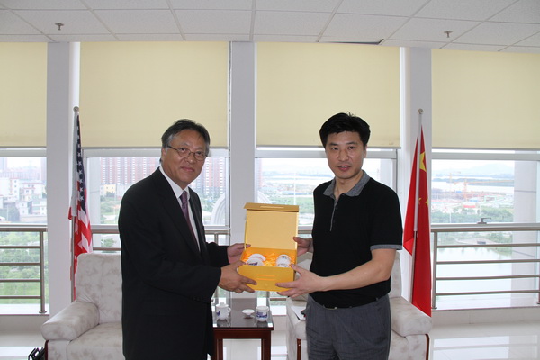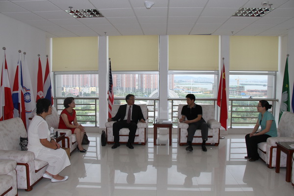 6月22日下午,美国欧爱科大学大学校长Jongin Kim、语言部主任Jung-Ae Lee一行访问beat365厦门校区。华文教育办公室主任赵明光接待了美国客人。