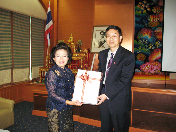 国家汉办驻泰国代表处负责人向李冀闽书记赠送资料