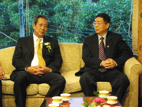 泰国前副总理披尼(左)在宴会前与李冀闽书记会晤