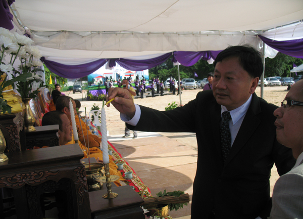 普吉府府尹王凌奇在奠基斋僧仪式上点烛