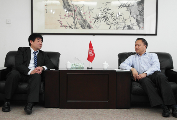 校长助理曾路与创造学园大学理事长王丰(左)会谈