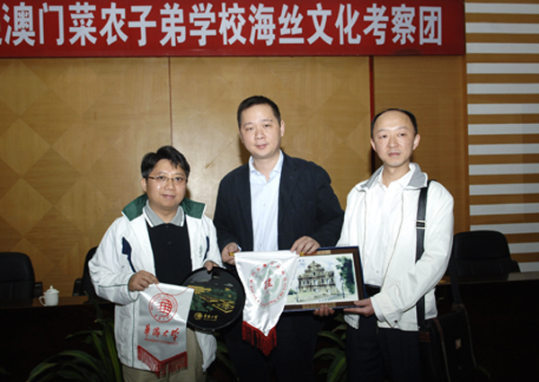为更好地了解“海上丝绸之路”文化和海峡西岸经济区建设发展情况,澳门特区教育委员会委员、澳门菜农子弟学校欧阳国键老师率该校海丝文化考察团一行23人今日上午到访华大。
