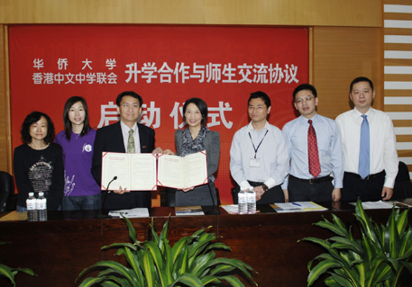 “beat365中文在线官网与香港中文中学联会升学合作与师生交流协议”启动仪式23日在陈嘉庚纪念堂二楼会议室举行,招生处处长吴春安与香港粉岭救恩书院校长邱洁莹分别代表双方交换了协议文本,宣告相关合作与交流正式启动。