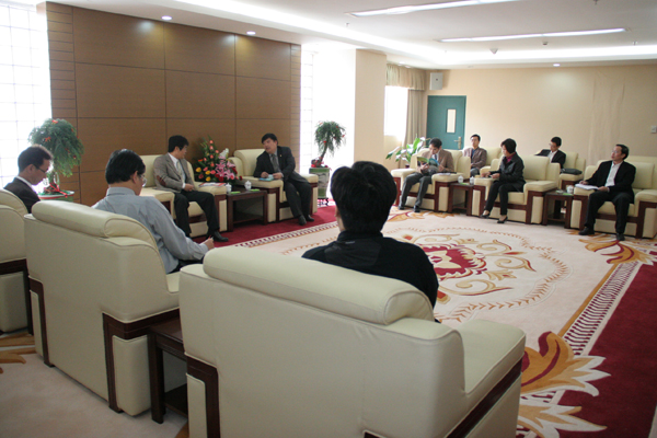 在行政研发大楼408室,校长助理彭霈热情接待来宾,双方就加快推进和落实两校合作办学事宜座谈交流。彭霈向客人介绍了华大工科优势和两个校区的学科分布等情况。宾主双方就加快推进两校在高尔夫教学、海洋生态休闲旅游、资讯技术等领域的合作办学事宜进行友好洽谈,并达成合作意向;还就合作模式和师生互换等相关事宜进行磋商,一致表达了齐心协力、快速推进海峡两岸高校合作办学步伐的良好愿望。