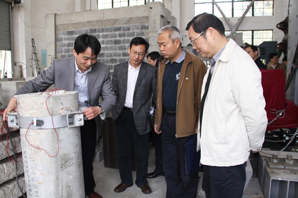 王知瑞副厅长(右一)等参观土木工程学院工程结构实验室