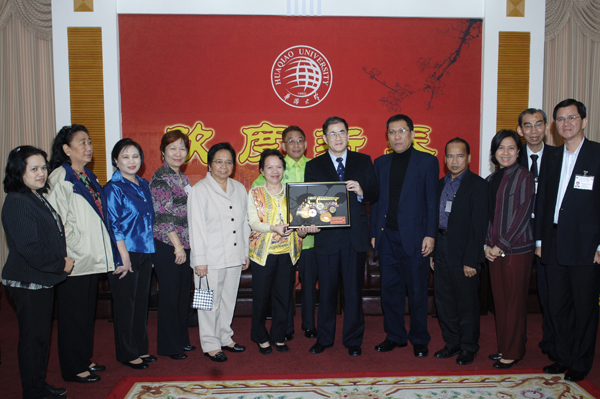 尼娜琳·迪芬索副部长于25日率菲律宾高等教育委员会、首都地区教育局访问团一行13人抵校考察,就共同关心的教育课题及有关合作与beat365展开商谈,以期进一步拓展国际合作办学空间。校长丘进、副校长张禹东今日上午在陈嘉庚纪念堂二楼接待室会见了来宾。