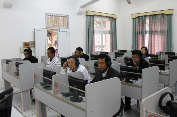 访问团考察华文学院语音教学设施
