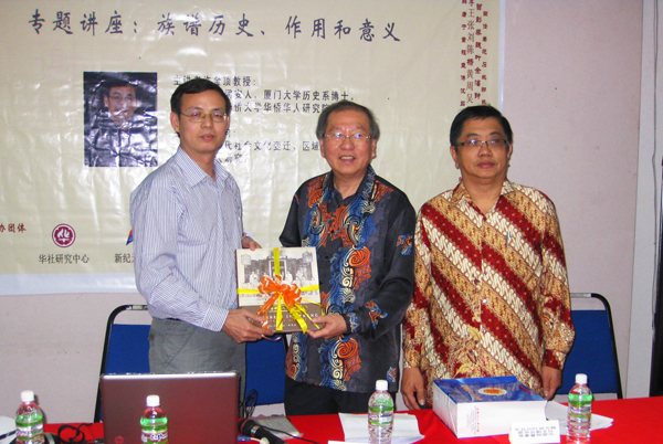 许金顶教授接受槟城中华大会堂署理主席许廷炎先生赠送的资料