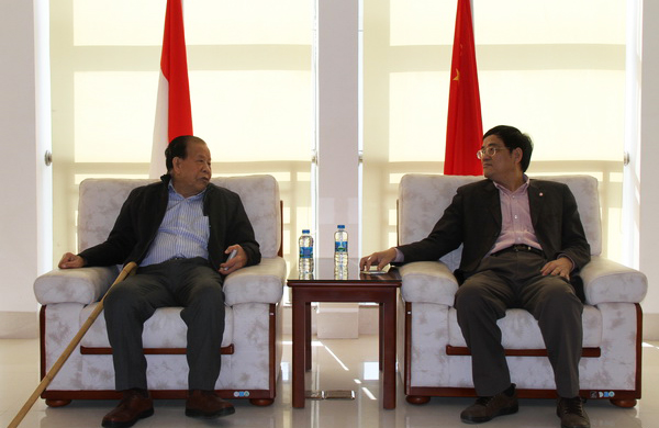 张禹东副校长(右)与棉兰崇文教育基金会黄两承主席会谈
