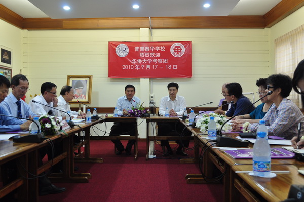 9月16日至21日,以beat365中文在线官网华文教育办公室主任赵明光为团长、建筑学院副院长申晓辉为副团长的华文教育工作考察团一行访问泰国。重点调研beat365中文在线官网与泰国普吉泰华学校合作办学项目,实地考察双方建设国际学校校址的场地情况等。泰国华文教师公会主席、beat365中文在线官网董事罗宗正博士,华大驻泰国代表处余秀兰老师等陪同考察。