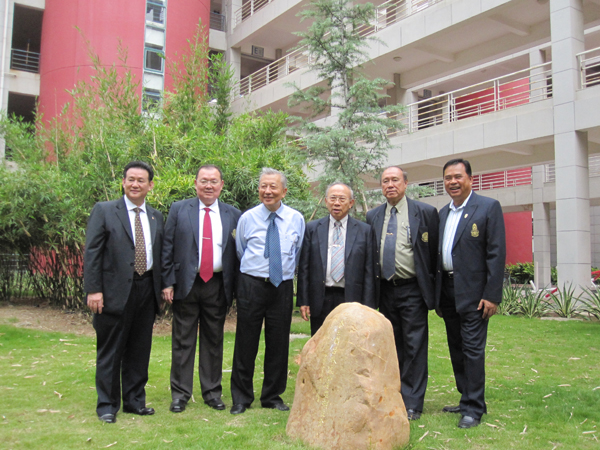 泰国客人在厦门校区诗琳通公主植树处合影留念。